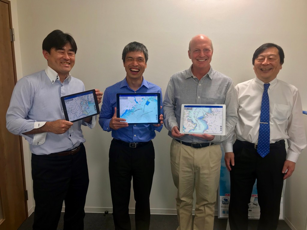 Less experienced sailors and people unfamiliar with sailing usually associate offshore and blue water sailing with increased danger. And, while it is true that one is further from help if something happens, it is also less likely something will happen as there are fewer boats to collide with and no obstructions in the water, with the exception of the rare cargo container that came off a ship during a storm- and the occasional whale! It is when one is close to shore and there are many other boats, reefs, shoals and fishing nets that extra caution is required. This is especially true for Japan. Mapple ON Co., Ltd has kindly allowed us to use their mapping software “New Pec Smart” for free. These maps are much more detailed than those that are obtained outside of Japan and will be extremely valuable to us as we approach the coast of Japan.