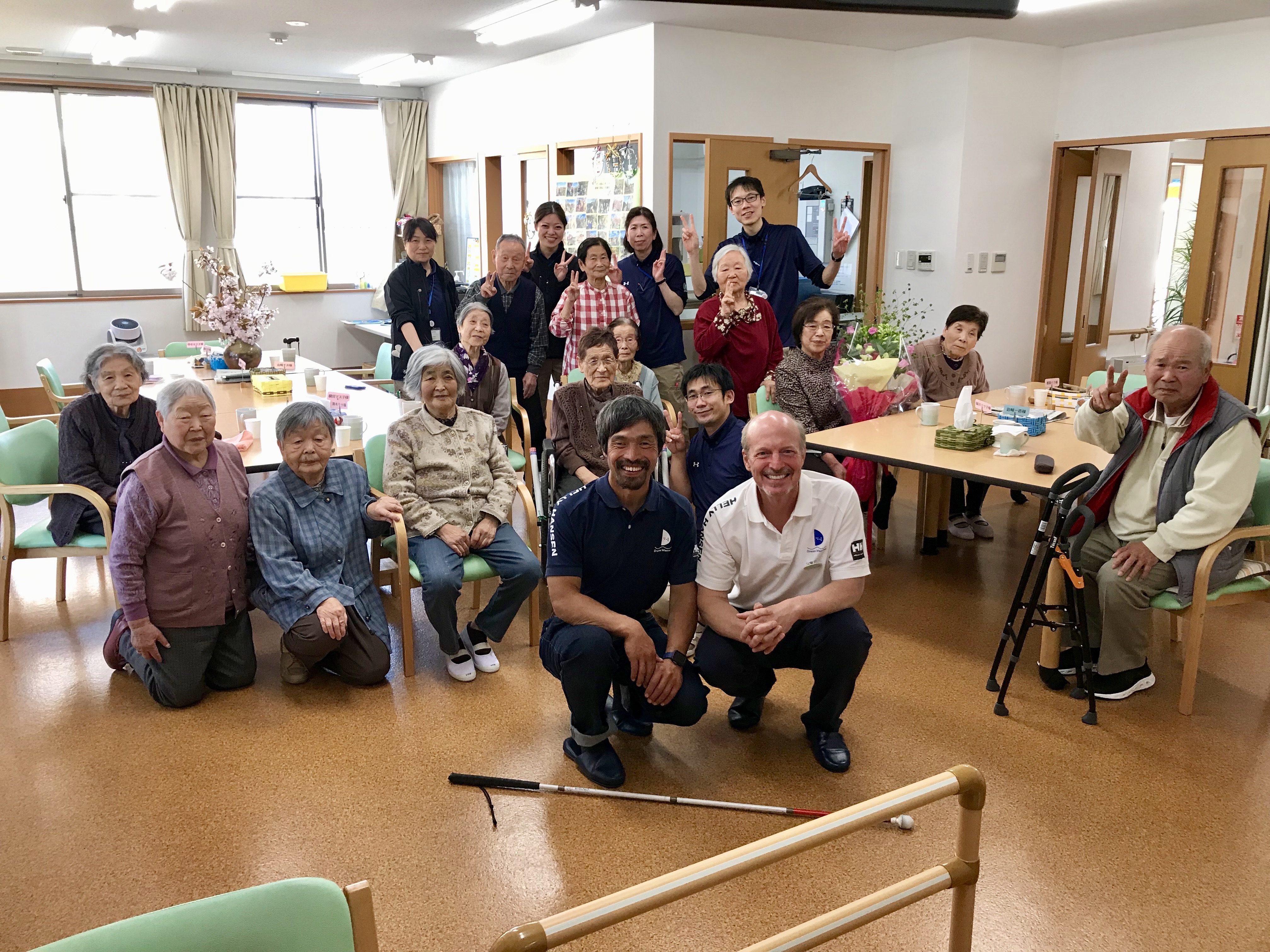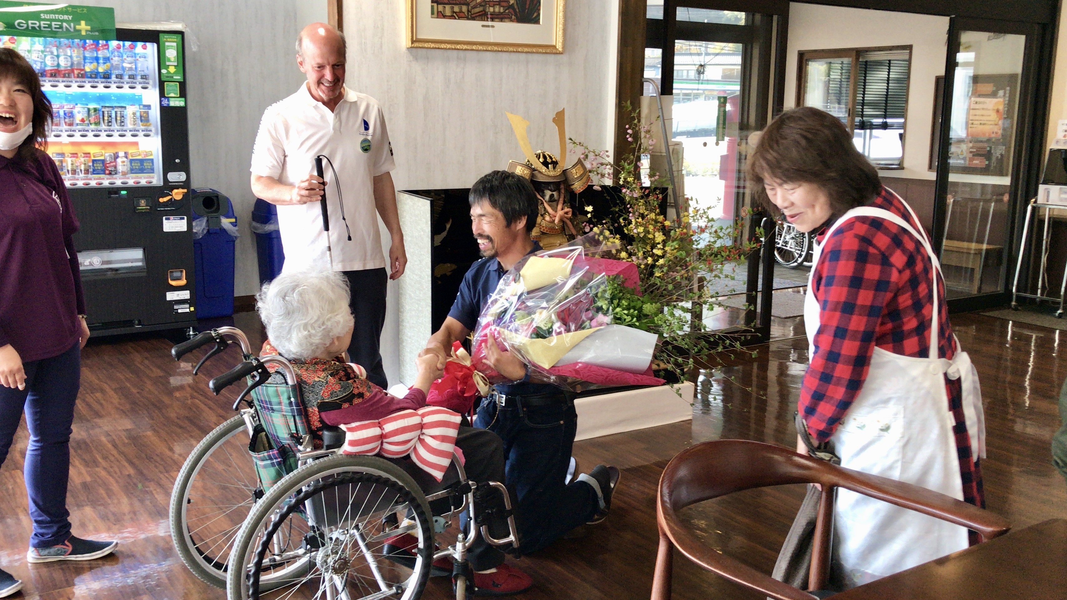 セレモニーで頂いた素敵なお花。小名浜滞在がしばし続く二人には活ける事も出来ないので、地元の高齢者施設を訪問してお花を貰っていただく事にしました。喜んで下さり、こちらも嬉しかったです。