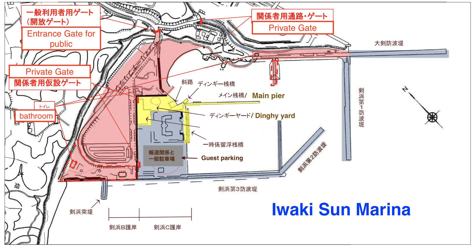 ※ Iwaki Sun Marina is a closed marina, but partially open to the public. We got special permission from the Harbor Office to use the other limited area. Thanks to the local volunteers for the arrangement. Please be considerate while at the marina. (open from 8 a.m. to 5:00 p.m.)